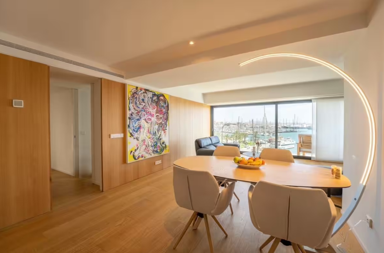 Tienes el fantástico Paseo Marítimo, el paseo marítimo del puerto, justo al lado de la puerta principal. Con un aperitivo en el balcón podrás disfrutar de una vista fantástica del puerto. Santa Catalina se encuentra a 5 minutos a pie y el centro de la ciudad con catedral está a menos de 15 minutos. También hay tiendas cerca. Este moderno apartamento amueblado se encuentra en una ubicación única justo en el paseo marítimo del puerto con fantásticas vistas al mar, los yates y la catedral. Ya sea que quieras dar un largo paseo hasta la playa de la casa de Palma, hacer ejercicio o caminar hasta la ciudad, hay algo para todos.