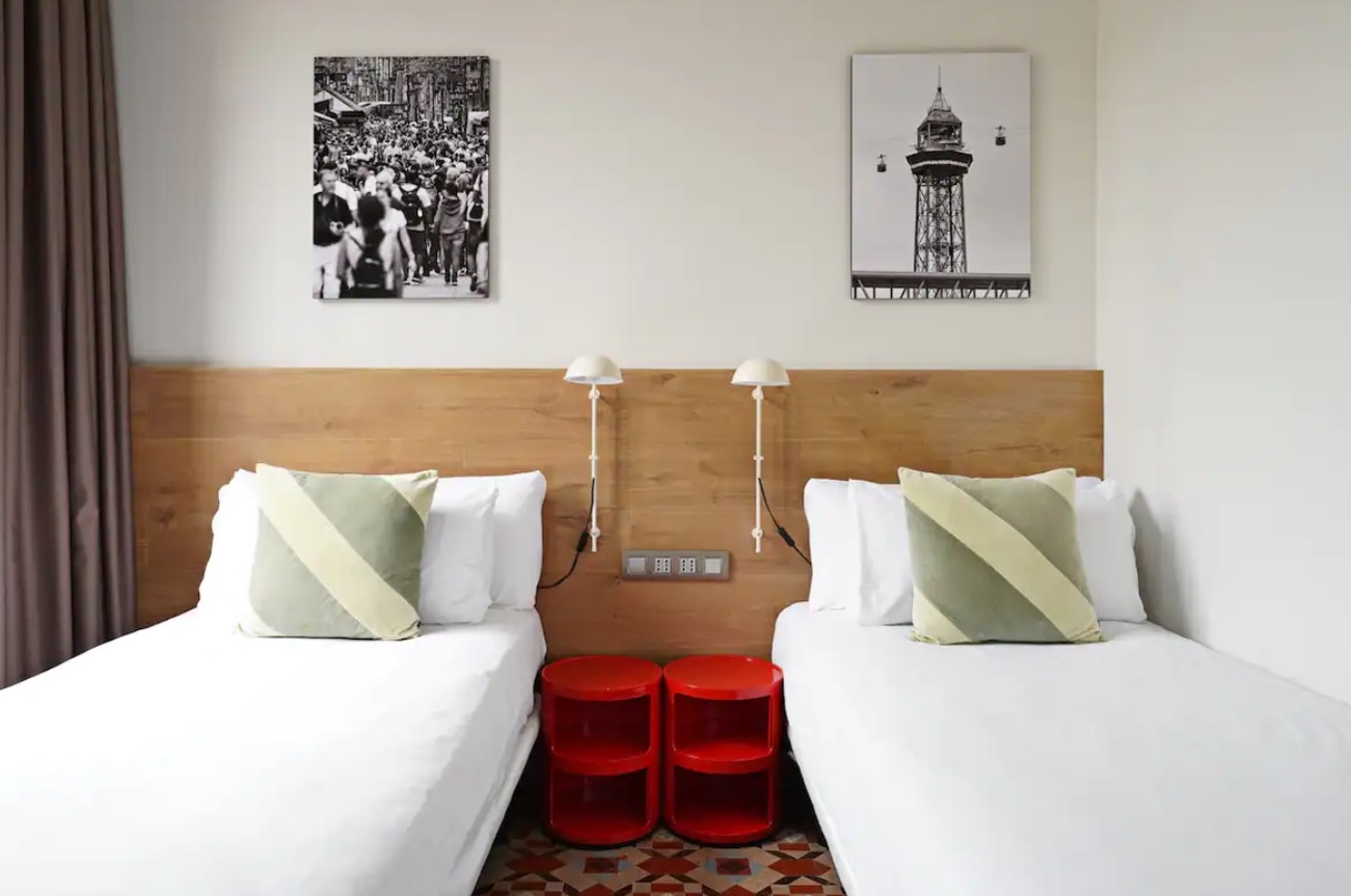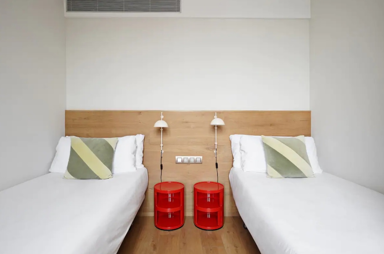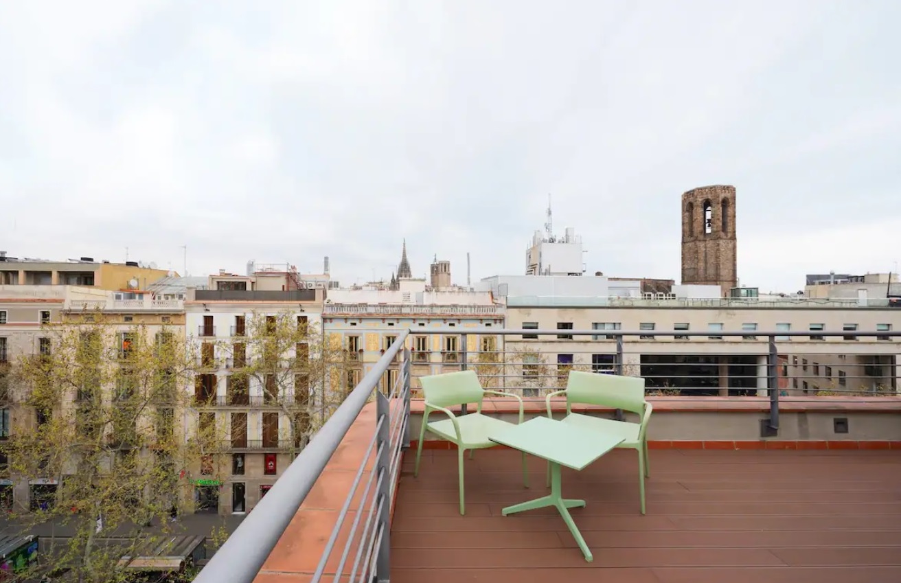 Este apartamento ofrece tres (3) dormitorios amueblados con una (1) cama doble y cuatro (4) camas individuales. El espacio de 71 metros cuadrados también incluye una cocina totalmente equipada y una sala de estar con un (1) sofá cama. La ubicación céntrica proporciona un fácil acceso a los bares y restaurantes numeorus, que atienden a todos los paladares. Desde la terraza común, los huéspedes pueden disfrutar de las impresionantes vistas de Barcelona.