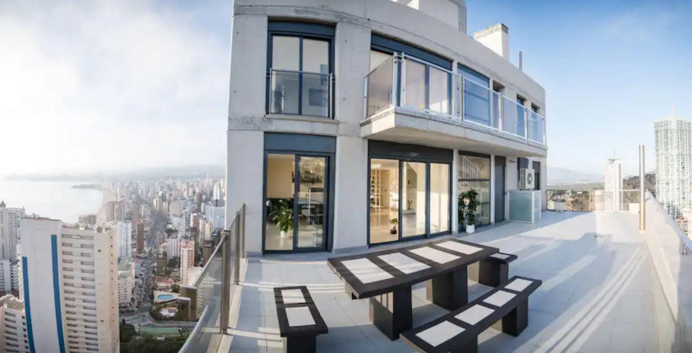 Este alojamiento único tiene 170 metros cuadrados de superficie. Vistas fantásticas de todo Benidorm e Isla de Benidorm. Disfruta de la paz del horizonte y del bullicio de la ciudad. Disfruta de acceso a una piscina, gimnasio, cancha de baloncesto y mucho más. Tres dormitorios, cada uno con un baño y vestidor separados, una gran sala de estar y una amplia terraza. Aparcamiento en el garaje de la casa. A cinco minutos a pie de la playa de Levante.