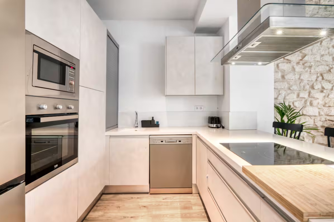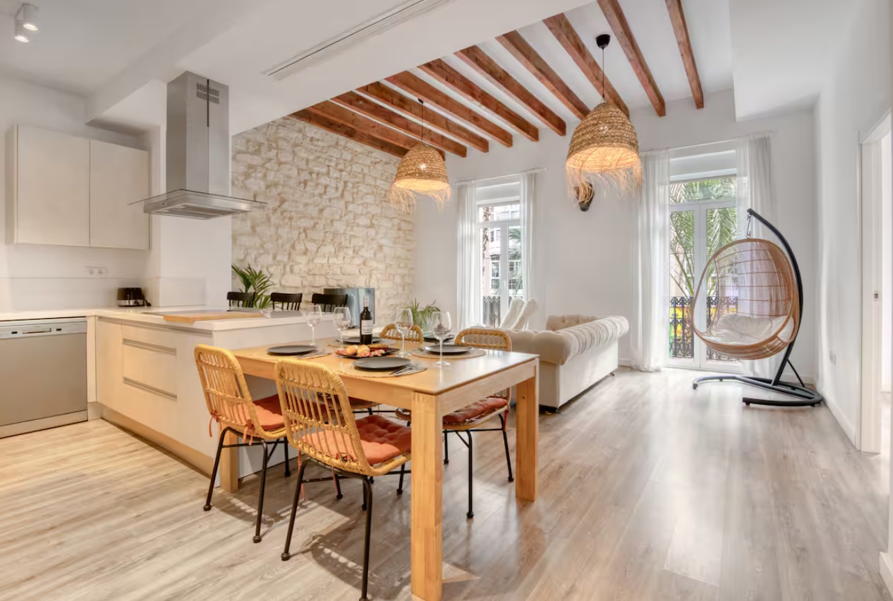 Este lugar especial está cerca de todo, lo que facilita la planificación de viajes. Esta hermosa casa se encuentra en un edificio histórico del siglo XIX en el centro de la ciudad de Alicante, justo al lado del histórico mercado central, a solo una calle de distancia, a 10 minutos a pie de la playa, y rodeada de famosos restaurantes y bares de entretenimiento. Tanto la vivienda como todo el edificio han sido completamente renovados. La casa occidental tiene ascensor y toda la casa tiene aire acondicionado central. El techo tiene una altura de más de 3.5 metros, lo que es muy hermoso. El vestíbulo de entrada abierto y la amplia sala de estar con comedor cuentan con dos balcones que dan a la calle, una cocina moderna y una isla. Hay tres dormitorios dobles y dos baños, uno de los cuales tiene un baño privado. El estilo único se combina con el diseño moderno y elegante, lo que lo hace diferente. Con un fácil acceso a la famosa playa de San Juan, este alojamiento en el centro de la ciudad está a solo un paso de tu familia.