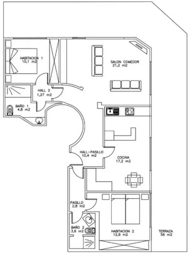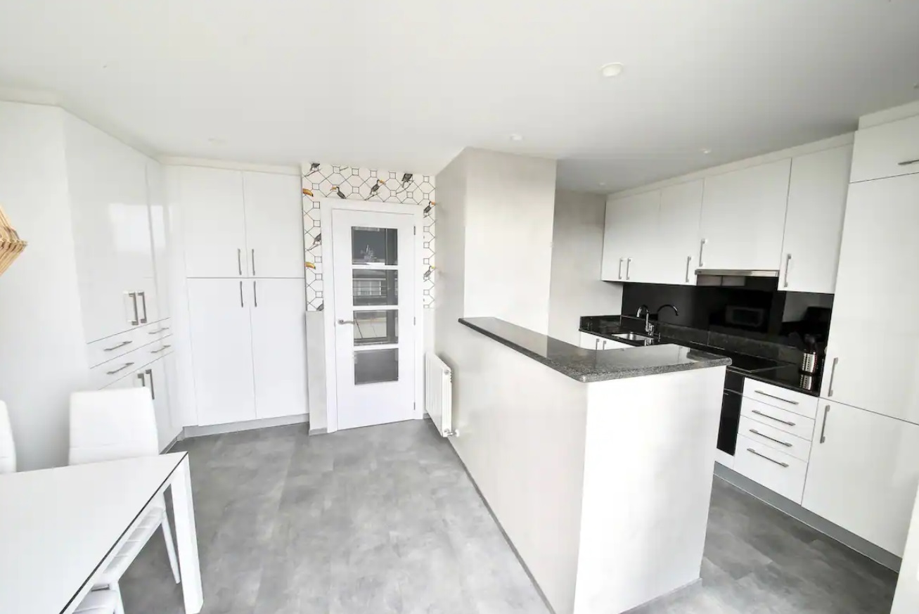 El apartamento hará de tu estancia algo inolvidable. Situado en un lugar inmejorable, frente a la parte vieja y la playa de La Concha, en pleno boulevard Donostiarra. No necesitarás ni un solo medio de transporte, todo está a mano. En la construcción del edificio se han utilizado materiales y equipamientos de 1era línea y está dotado de todo tipo de comodidades. Con una superficie de 80 m2, el apartamento está decorado con un estilo sobrio y minimalista en el que predominan los tonos claros. Está equipado con un cómodo mobiliario de diseño de primeras marcas. El salón es un luminoso y amplio, presidido por una impresionante terraza que rodea todo el apartamento y de donde se puede ver el mar, monte Urgull, parte vieja y Kursaal. La cocina está equipada con electrodomésticos de primeras marcas y perfectamente equipada con lavadora, lavavajillas, horno, microondas, hervidor de agua, cafetera, placa vitrocerámica, tostadora, platos, cubiertos, tazas, vasos, etc. La sala dispone de una TV de 42”. Hay dos habitaciones y dos cuartos de baño incorporados. Las habitaciones dan a la gran terraza. La habitación principal dispone de cama de matrimonio de 150 cms, la segunda habitación está equipada con dos camas individuales de 90 cms.