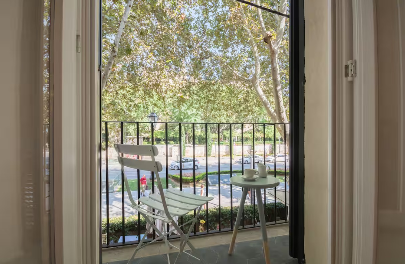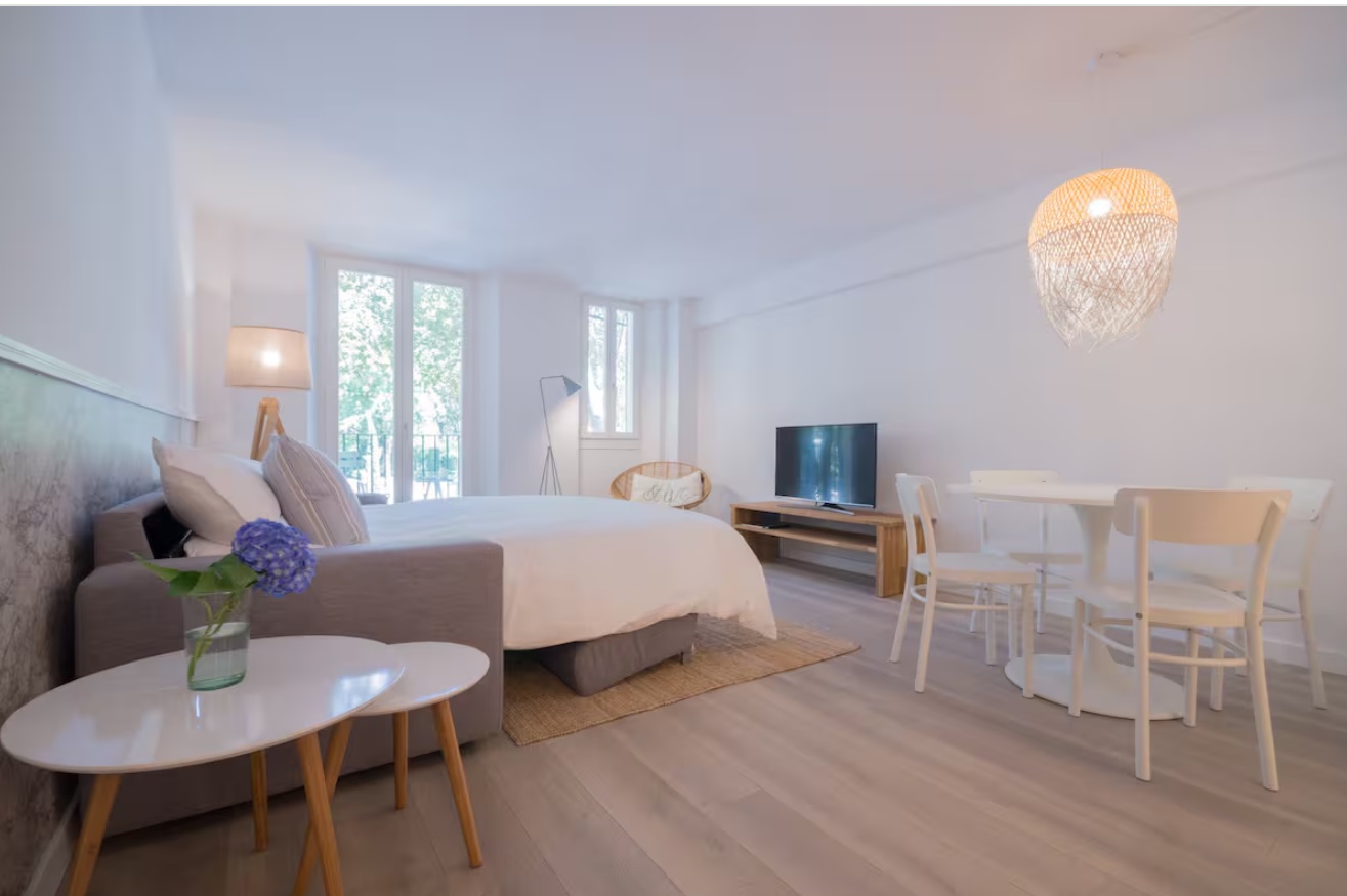 Frente al Palacio Real de Almudaina, se encuentra en la primera planta. El ascensor te permitirá entrar directamente, Este alojamiento tiene una elegante entrada que te lleva a la cocina de planta abierta. La cocina está totalmente equipada (lavadora-secadora, lavavajillas, tostadora, exprimidor, microondas, caldera, cafetera…) y está abierta al salón. También tiene una mesa alta y sillas. La sala de estar es luminosa y espaciosa. Tiene un pequeño balcón y ventana para disfrutar de las vistas. También hay una zona de lectura con una mecedora, un cómodo sofá cama de diseño italiano (160 cm x 200 cm). El apartamento se encuentra en el barrio de La Lonja. Uno de los más modernos de Palma.
