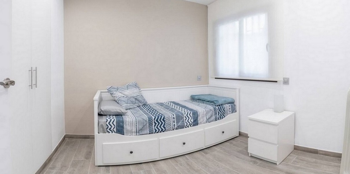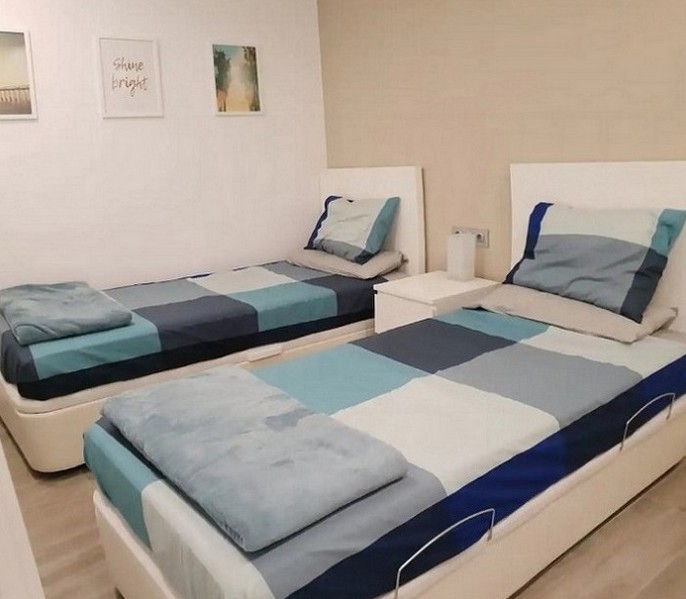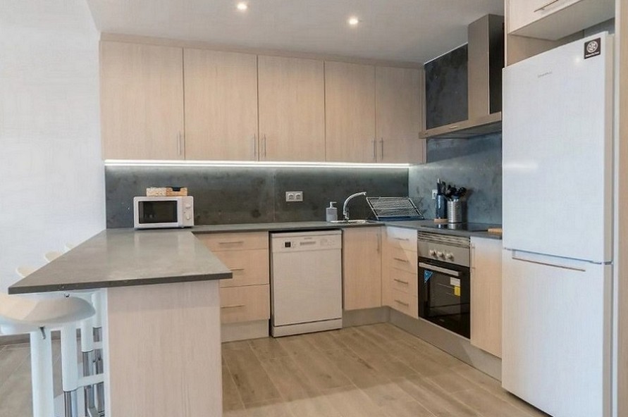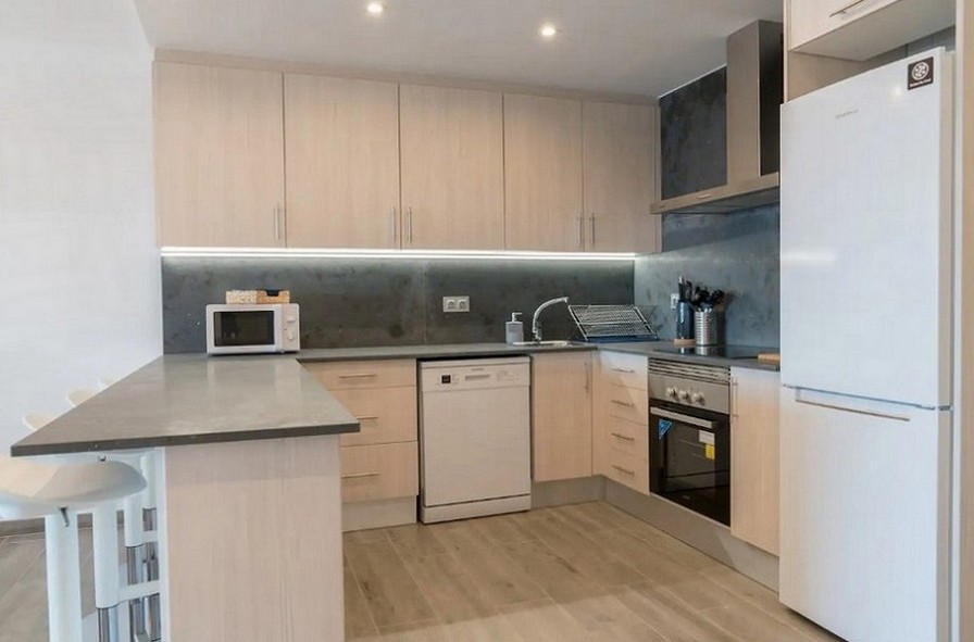 En primera linea de mar. El apartamento tiene 1 dormitorio en suite, 2 dormitorios, 2 baños, cocina abierta y un amplio salón con comedor con acceso a la terraza con vistas al mar. En la cocina hay todo lo necesario para preparar comidas y cenas en casa y en la entrada hay una lavadora. En la urbanización hay dos piscinas en una jardín muy bien cuidado y tranquilo.
