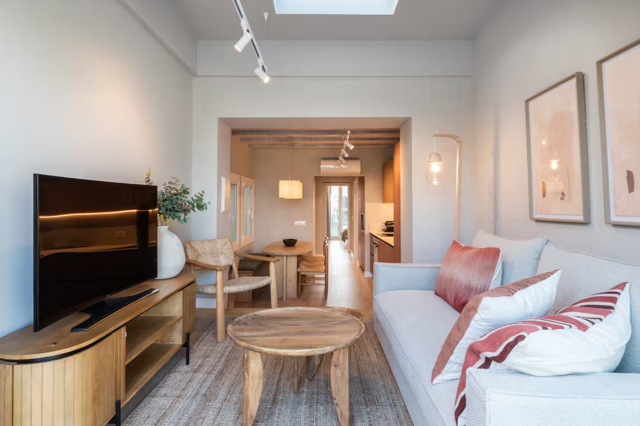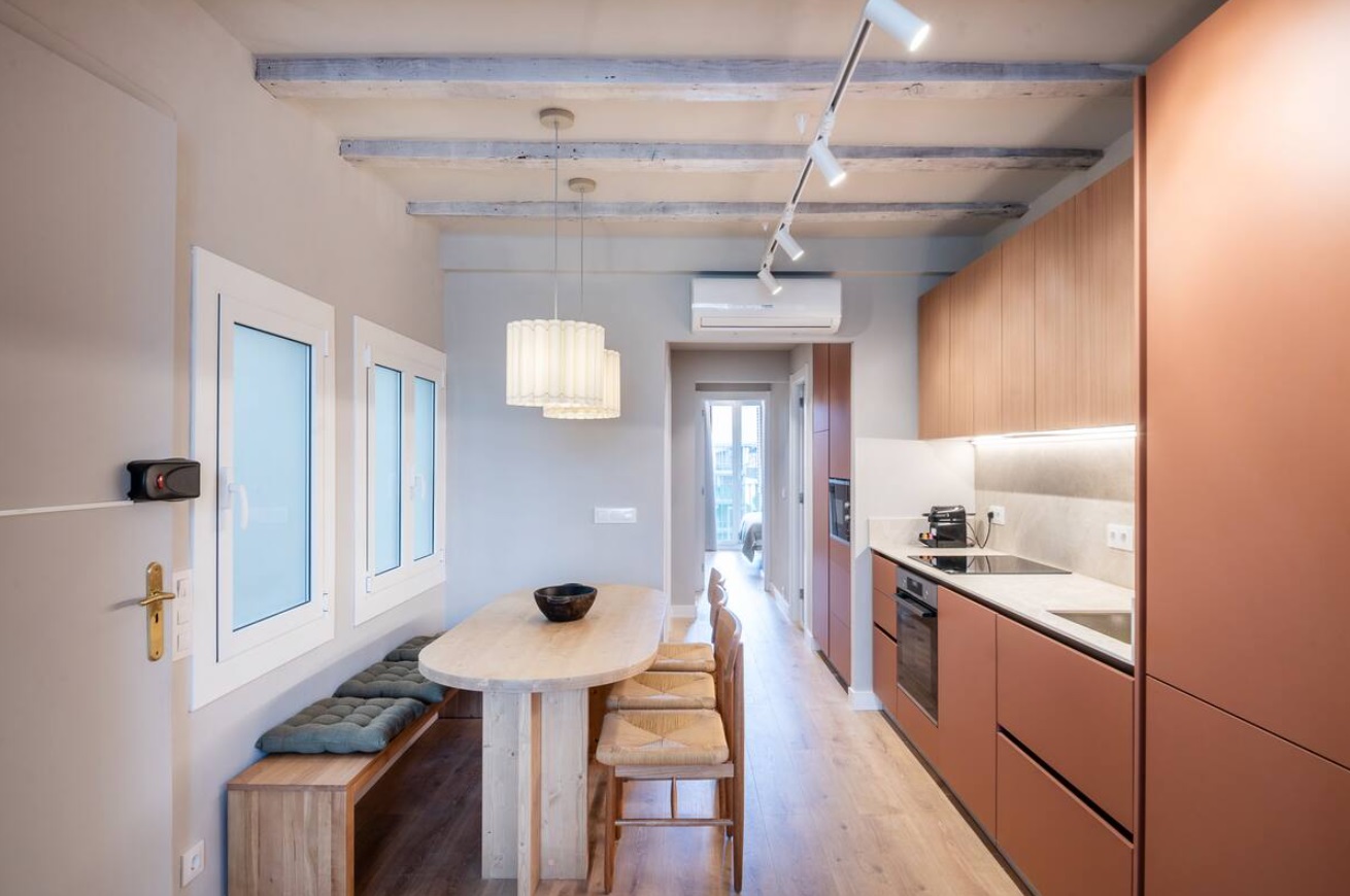 No tengas dudas que recordarás este hogar como uno de los mejores que has estado. En este ático recien reformado, con una espectácular terraza y vistas soñadas, disfrutarás cada momento de tu estancia. Cada detalle ha sido pensado para el bienestar de los huéspedes, con un moderno diseño, excelente climatización y todas las comodidades que te mereces en una ubicación privilegiada. El apartamento cuenta con tres dormitorios, el primero de ellos con cama Queen Size y baño en suite, otro dormitorio con dos camas individuales juntas que componen una gran cama de 180cm y el restante con dos camas individuales. Todos los dormitorios tienen bomba de frio calor. Desde el salón, con un cómodo sofá, Smart TV y un potente AC, se accede a la espéctacular terraza con preciosas vistas y los mejores atardeceres que los invitará a disfrutar el cálido clima de Barcelona. Hacia el otro lado del salón se encuentra una moderna cocina integrada y completamente equipada, una zona de comedor y un segundo baño completo para total cómodidad de los huéspedes. El apartamento está totalmente equipado, con recursos optimizados para una mayor sostenibilidad y con tecnología aplicada al bienestar, controladores inteligentes de temperatura para una óptima climatización durante toda la estancia, Wifi de alta velocidad, Smart TV, toallas, ropa de cama, champú, acondicionador, gel de ducha, 4 bombas de frio-calor, lavadora, lavaplatos, plancha, y una amplia variedad de utensilios para cocinar.
