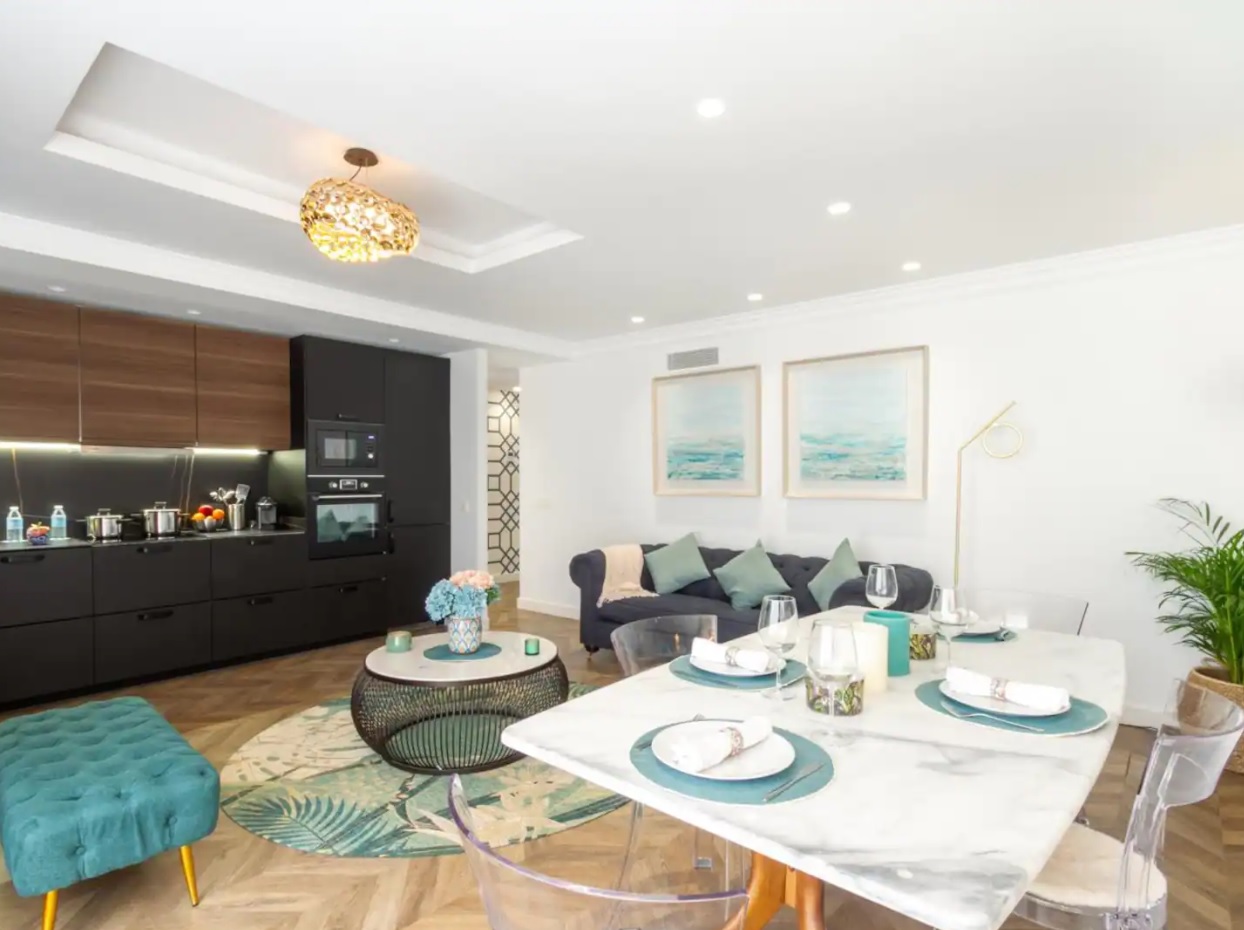 El apartamento viene con aparcamiento subterráneo seguro. El amplio dormitorio principal está amueblado con cama King size y tiene armarios empotrados y baño en suite.