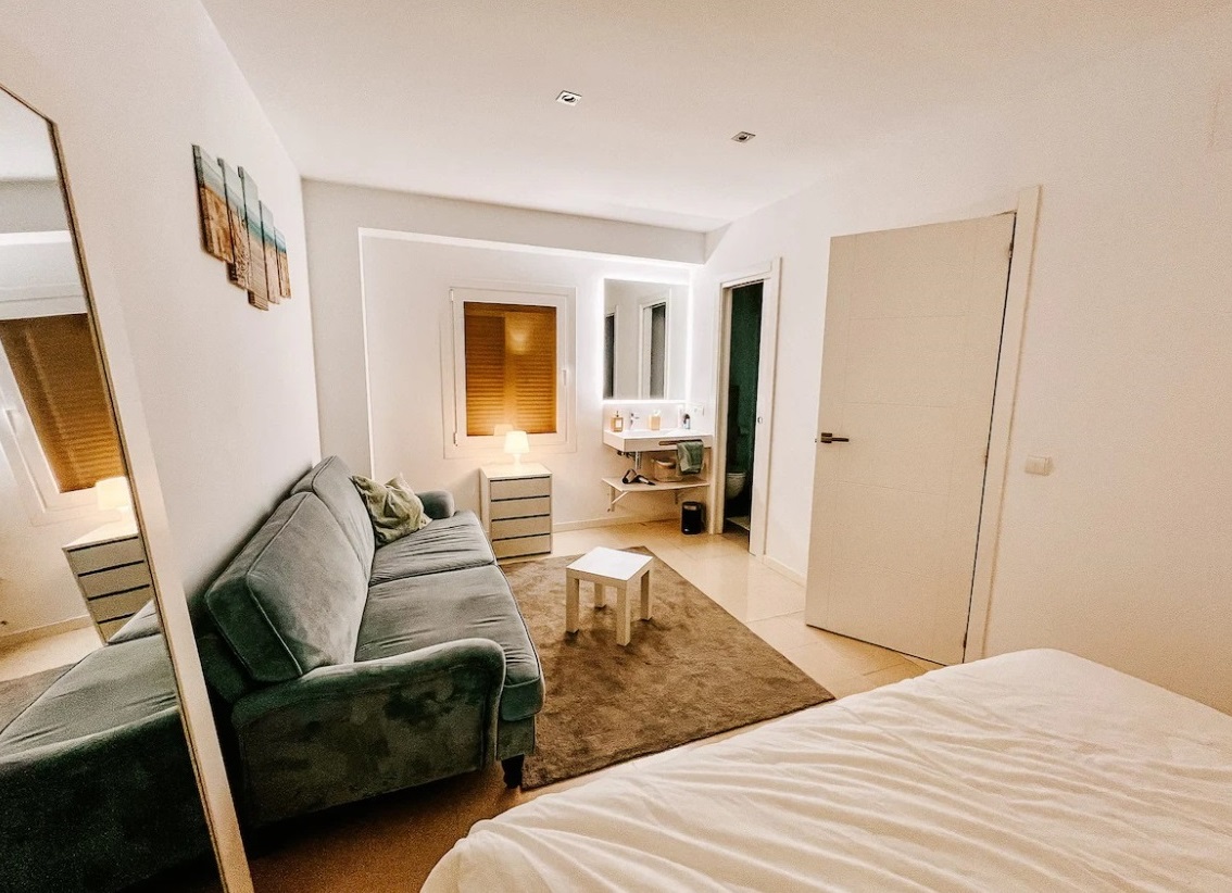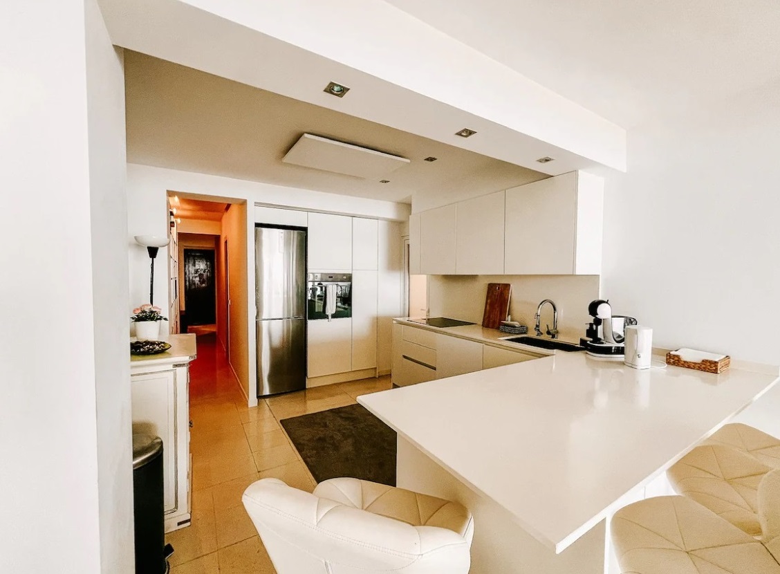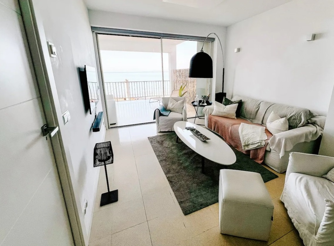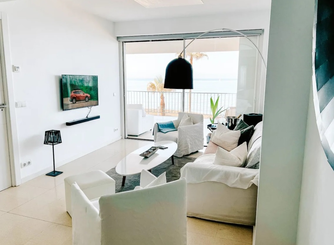 Este apartamento reformado con una sala de estar de unos 90 m2 se encuentra en la 2ª planta (con ascensor) y está dividido en 3 dormitorios (uno de los cuales actualmente está amueblado como vestidor y oficina), 2 baños con ducha y aseo (uno de ellos en suite), cocina americana con conexión al salón, 1 trastero en la amplia terraza de 25 m2 y 1 pequeña terraza a la parte trasera. Bienvenido a este apartamento renovado de 4 habitaciones con una generosa sala de estar de unos 90 metros cuadrados. El apartamento se encuentra en el segundo piso y es fácilmente accesible por ascensor. Ofrece 4 habitaciones, dos baños con ducha e inodoro, una cocina americana de alta calidad con acceso directo a la sala de estar, así como un práctico trastero.Para temperaturas agradables, calentadores de infrarrojos en los techos, que están instalados en todas las habitaciones menos en las habitaciones. Estos ofrecen una temperatura ambiente acogedora incluso en días fríos. Lo más destacado son las camas de agua calentables, que garantizan una comodidad especialmente alta para dormir. La cocina americana ofrece no solo un aspecto moderno, sino también una conexión práctica con la sala. La pequeña terraza, desde la que se puede disfrutar de una vista al mar Mediterráneo, es accesible desde la cocina y también alberga la conexión para la lavadora. La gran terraza, accesible desde la sala, ofrece una zona de estar ideal para experimentar la impresionante vista panorámica del mar Mediterráneo. Aquí experimentarás vivir en una nueva dimensión: elegante, cómoda y con una vista incomparable.