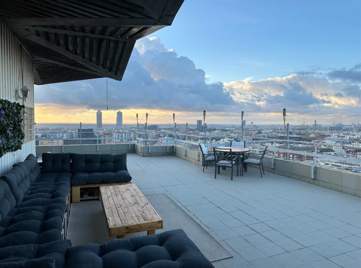 Vistas panorámicas de 360 grados a toda la ciudad. Primera planta, salón-comedor y cocina totalmente equipada. Habitación suite y un funcional despacho. Segunda planta encontrarás la segunda habitación suite y salida directa a una espectacular terraza . Esta terraza es el corazón del ático, perfecta para relajarse, disfrutar de cenas al aire libre o contemplar inigualables vistas que abarcan toda la ciudad. El apartamento duplex también tiene 2 dormitorios con baños en suite (uno en la primera planta, una en la segunda). La terraza que rodea todo el apartamento ofrece vistas de 360 º sobre toda la ciudad.