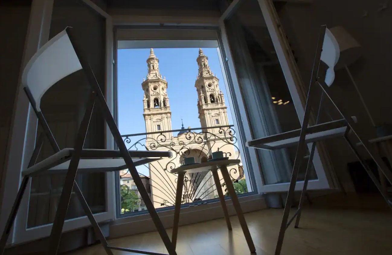 Se encuentra a sólo 3 minutos a pie de la Calle Laurel. Totalmente equipado con todas las comodidades, es ideal para familias, parejas, viajeros de ocio/negocios y para los amantes del vino! Situado en La Plaza del Mercado nuestro apartamento, te ofrece la posibilidad de tomarte una copa de vino en el balcón disfrutando de unas vistas espectaculares de la Concatedral de Santa María de la Redonda. Y sumergirte en el gran ambiente que hay en la ciudad.