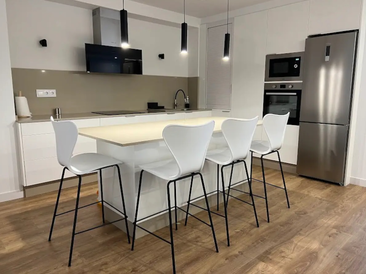 La cocina es amplia, práctica y con una isla espaciosa para disfrutar de desayunos y comidas en compañía. Puedes disfrutar también de una comida distendida en el conjunto de comedor.