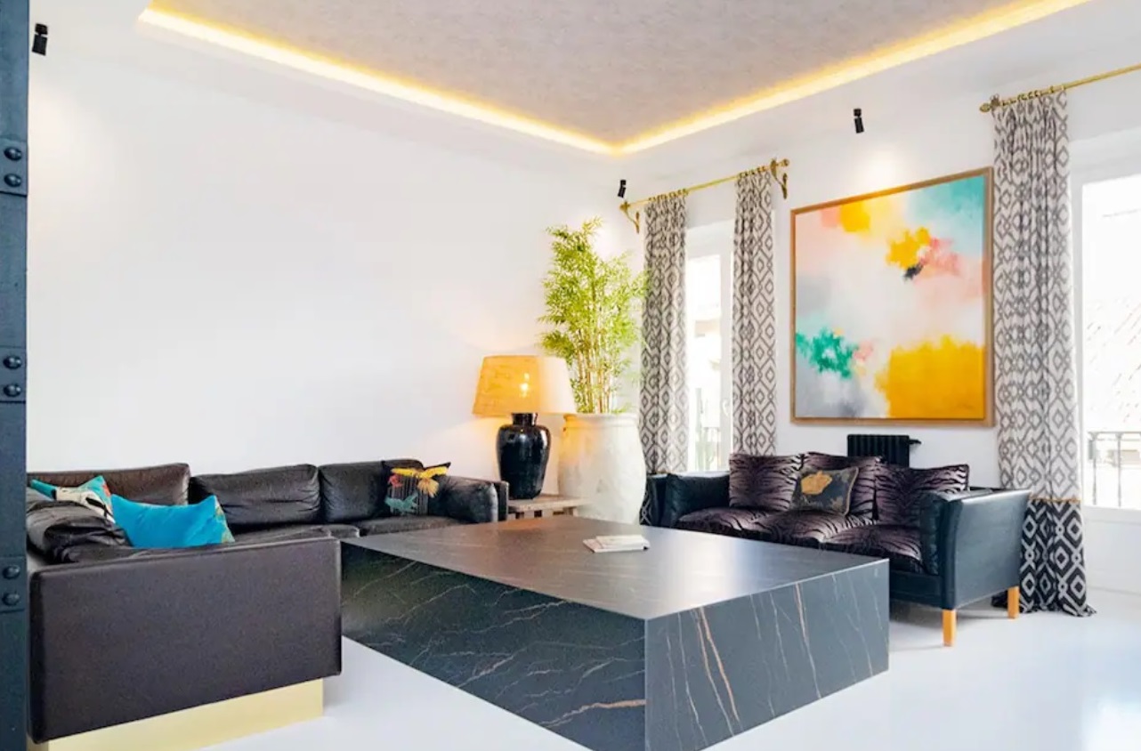 Puedes pasar de un salón moderno donde tener una reunión de negocios, como leer un libro muebles de cuero italiano.