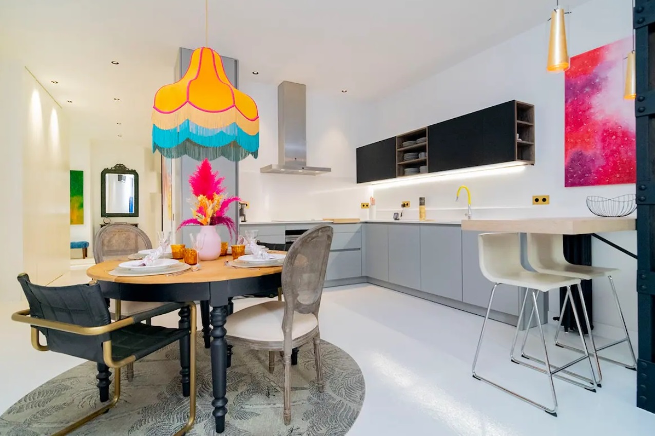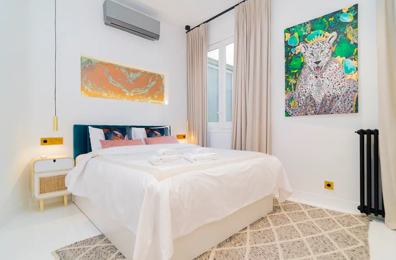 Exquisito y finamente decorado, con abundante iluminación natural y cocina dada al salón para aportar un comedor ideal, que hará a tus comidas únicas e irrepetibles. Amplios espacios, techo doble altura, sala vistosa y cómoda de la cual no querrás salir. Espacio de diseño y confort, en donde puedes enamorarte de las vistas al cielo de Madrid desde nuestros balcones mientras compartes un buen vino, y al final de la noche poder descansar con un baño de sales y luego, en una cama maravillosa doble.