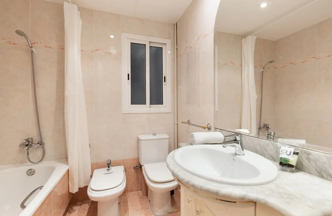 Este impresionante apartamento en Barcelona cuenta con tres dormitorios para un máximo de 4 huéspedes. Ambos dormitorios tienen una cama doble de alta gama, ropa de cama de marca, iluminación suave y obras de arte contemporáneo. Las habitaciones son cálidas y acogedoras, y un gran lugar para relajarse después de explorar la hermosa ciudad.